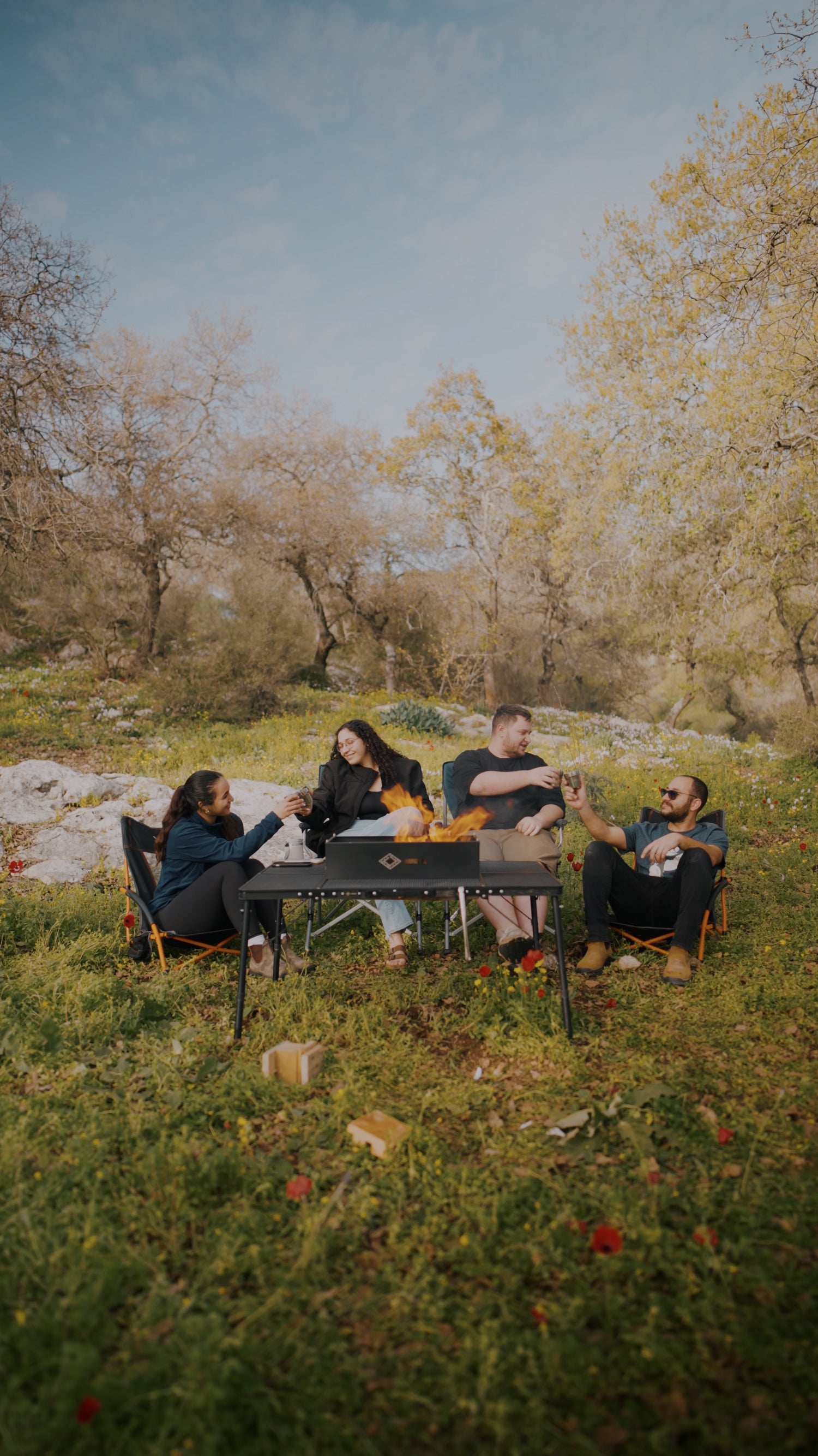 השולחן שלנו מרכז סביבו את כולם. מבשלים יחד, אוכלים יחד ונשארים לדבר מסביב למדורה עד השעות הקטנות.