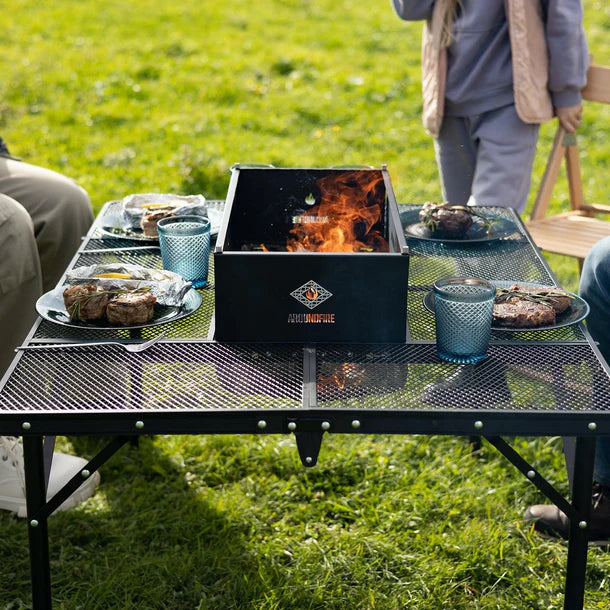 AroundFire Gather Lite הוא שולחן גריל רב-תכליתי המשלב גריל, פיט אש, בישול על גז ושולחן חברתי במקום אחד - מושלם למפגשים בחוץ, קמפינג, טיולים או חצר הבית. המוצר נפתח בתוך 30 שניות, קל לנשיאה (כ-7.4 ק״ג בלבד), ומתאים לכל מסיבה או ארוחה מחוץ לבית.